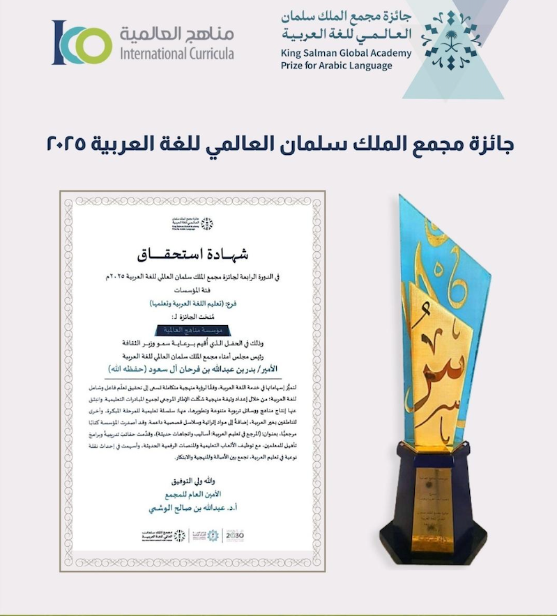 The programs included in this project represent a hope for the desired renaissance sought to spread the Islamic culture in various parts of the earth through the language chosen by God for the revelation of his book. The efforts have been done and will be done by the International Curricula (Manahej) in this regard offer all the goodness.